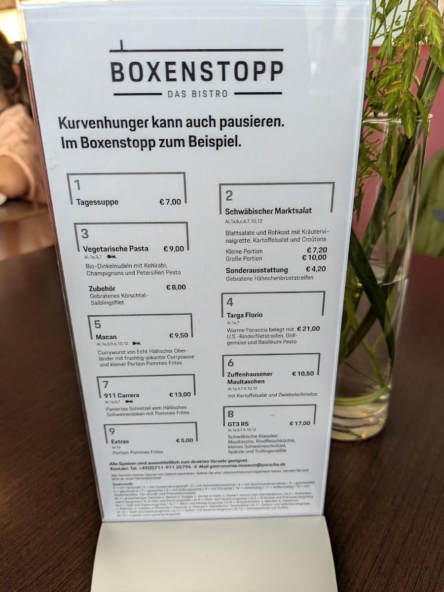 The ambience is enhanced by quick and efficient service, making it an ideal pit stop for those exploring the museum or the vibrant Porsche Factory Complex. While drinks might lean towards the pricier side, the overall experience at Boxenstopp STUTTGART is memorable, with many patrons leaving feeling like they’ve indulged in something special.
